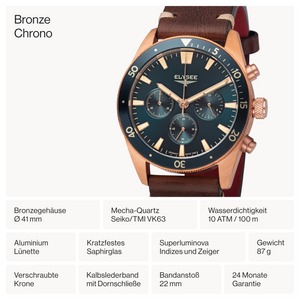 Sapphire crystal , 41mm , Chronograph , BRONZE
