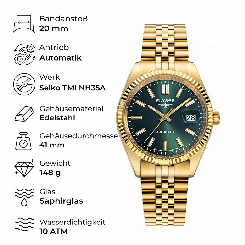 Saphirglas, 41mm, Automatik, EDELSTAHL