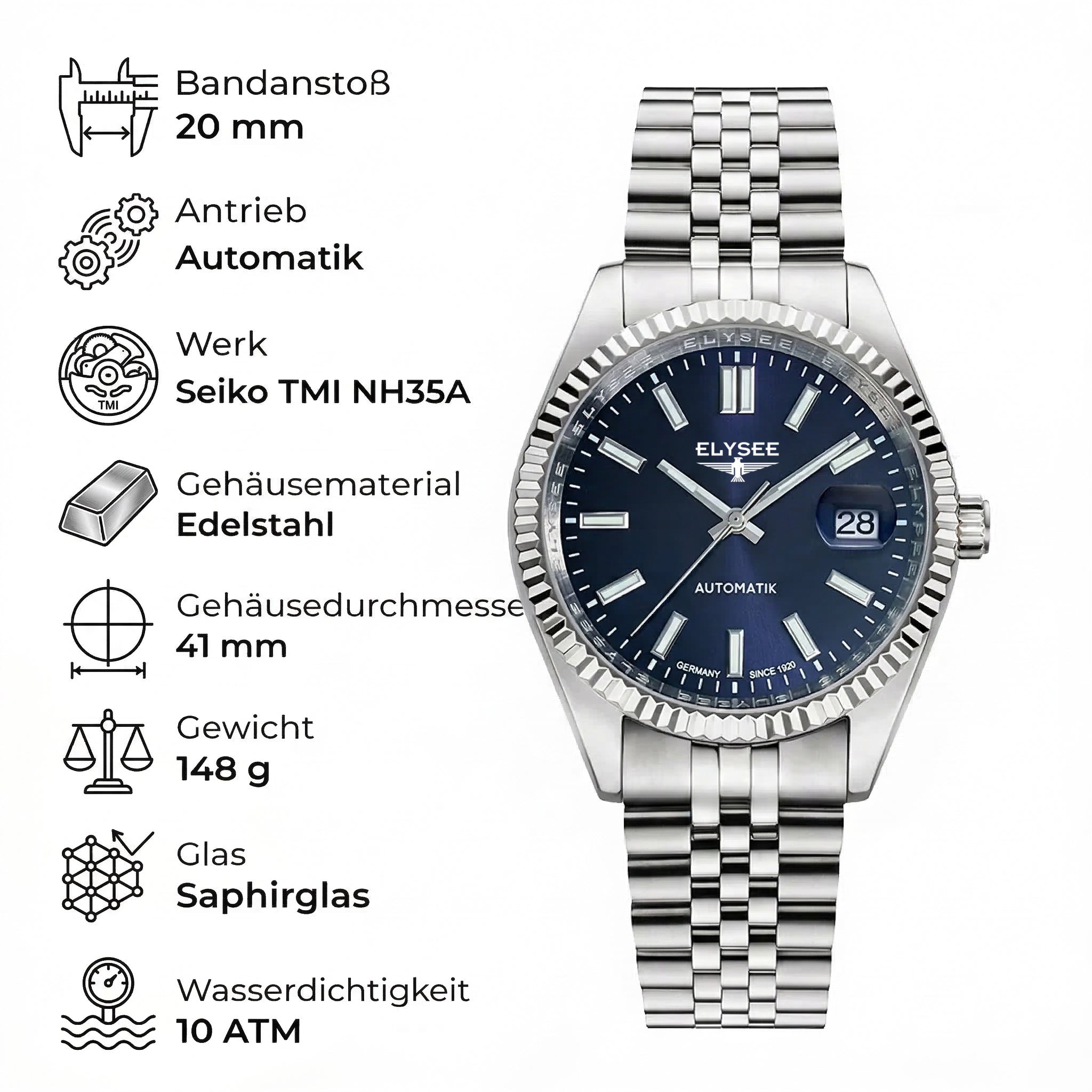 Gemeinsam mit unseren Uhrmachern und Entwicklern haben wir daraus eine Uhr geschaffen, die Design, Technik und Preis perfekt vereint. Angetrieben von einem Seiko TMI Automatikwerk mit Glasboden, geschützt durch kratzfestes Saphirglas und gefertigt aus hochwertigem 316L Edelstahl.