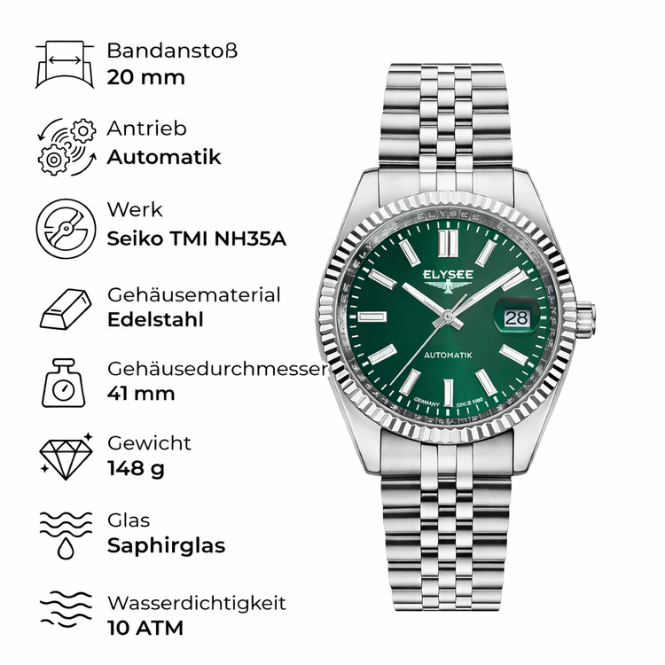 Saphirglas, 41mm, Automatik, EDELSTAHL